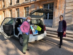 Légende Photo : Sabine Chiche-Riu est venue prendre en charge les draps auprès de Marie-Carole Ciuntu, en mairie, ce mercredi.