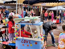 La suite de la journée s’est déroulée sous la « conduite » de l’association O’Bruyères qui a entraîné tout le monde dans les années 70 avec buvette style Diner américain et orchestre « déchaîné ». Le clou de ce « voyage dans les 70’s » a été le défilé de caisses à savon : 21 bolides, tous plus magnifiques les uns que les autres, ont enchanté petits et grands. Une bien belle journée… hors du temps !
