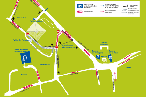 Travaux Fermeture à la circulation d'une partie des rues des Fontaines et Maurice Berteaux et d'une voie avenue Winston Churchill Dans le cadre des travaux du Centre Ville, une partie de la rue Maurice Berteaux, une voie de l&…