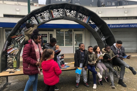 Un banc à lire place de la fraternité À la demande de l’association Lire et Relire et de l’épicerie solidaire Epi de Son un banc à lire a…