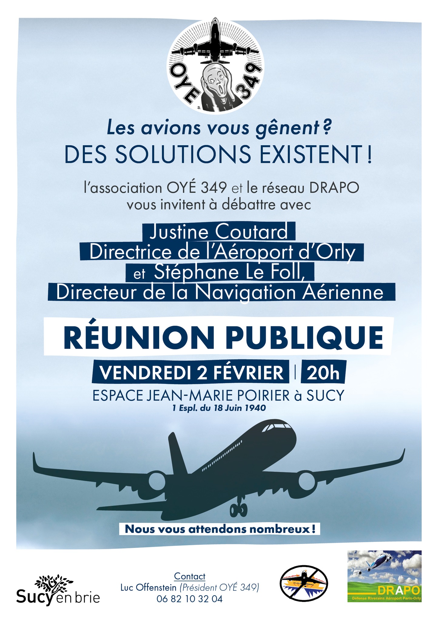 La Ville et l''association Oyé 349, vous invitent à venir échanger avec la directrice de l'aéroport d'Orly, Justine Coutard et le directeur de la Navigation Aérienne, Stéphane Le Foll